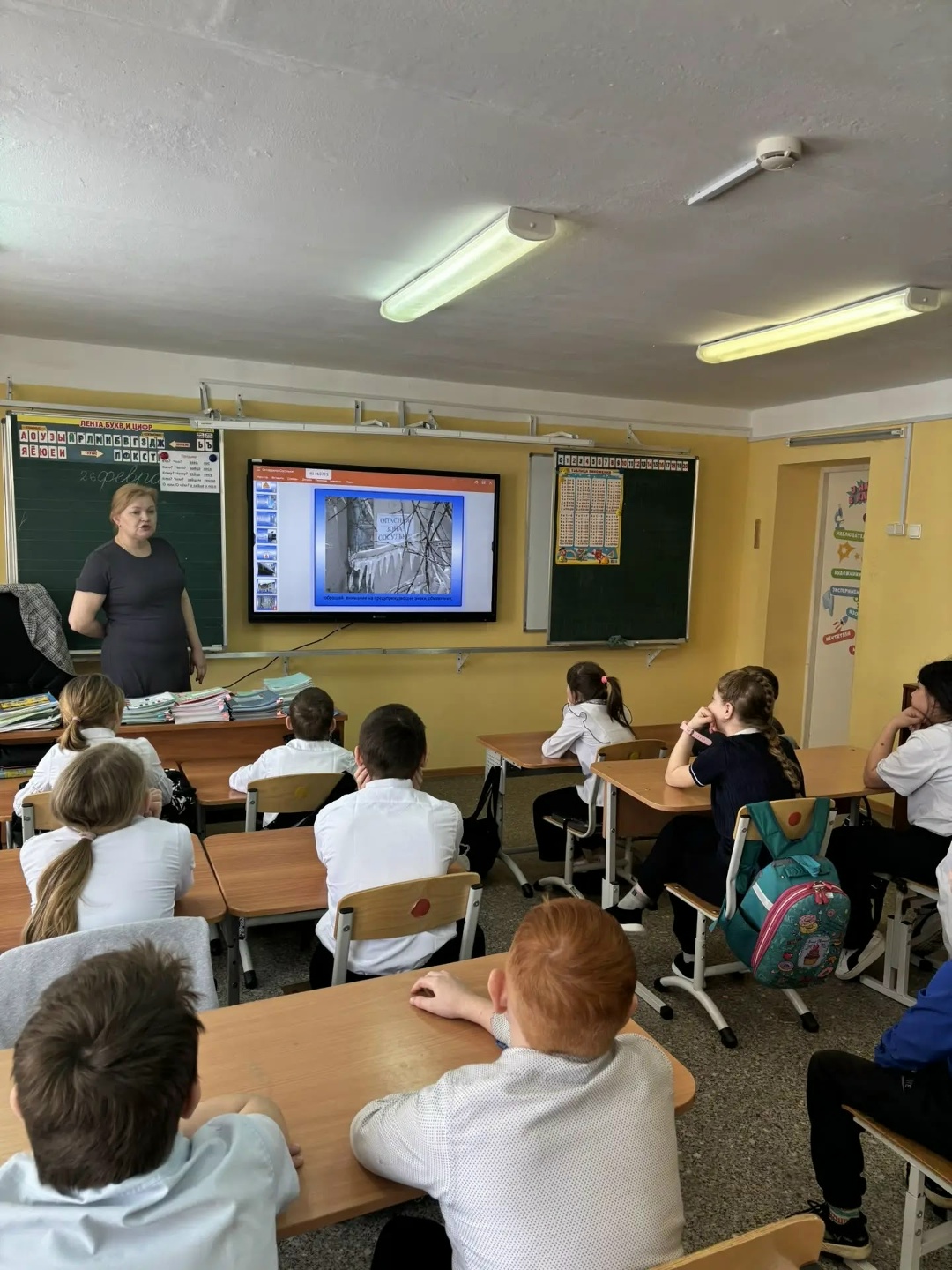 Сегодня педагог Жданова Ирина Арсентьевна провела важное занятие для учащихся 1-4 классов. Ребята детально обсудили опасности, которые подстерегают зимой и весной: скользкий лед, сосульки, опасные горки, сход снега с крыш. Они вспомнили главные правила безопасной игры и передвижения.