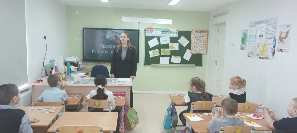 Пятого марта для учащихся 1-2 классов прошёл открытый классный час «Профессия защищать Родину», который провела учитель начальных классов Сергеева Анастасия Дмитриевна. Мероприятие было выстроено в форме игры-путешествия по станциям : дети не просто слушали — они жили темой, пропускали её через собственные действия. С самого начала Анастасия Дмитриевна создала атмосферу доверия, тепла и сопричастности. Ритуал начала — рука на сердце, ощущение биения «храброго сердца» — настроил ребят на важный лад. Весь классный час они чувствовали себя не зрителями, а настоящей командой, выполняющей ответственные задания.