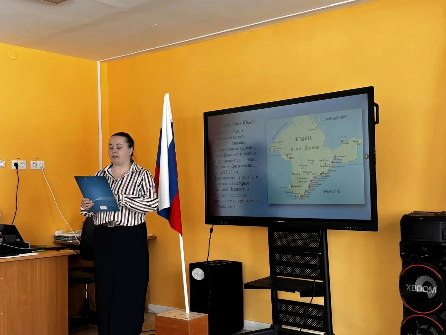 В нашей школе прошёл важный информационно - воспитательный урок, приуроченный ко Дню воссоединения Крыма с Россией. Под руководством куратора первичного отделения Движения Первых Волковой Н.А., ребята познакомились с историей этого знаменательного события, посмотрев документальный фильм «Крым. 10 лет».